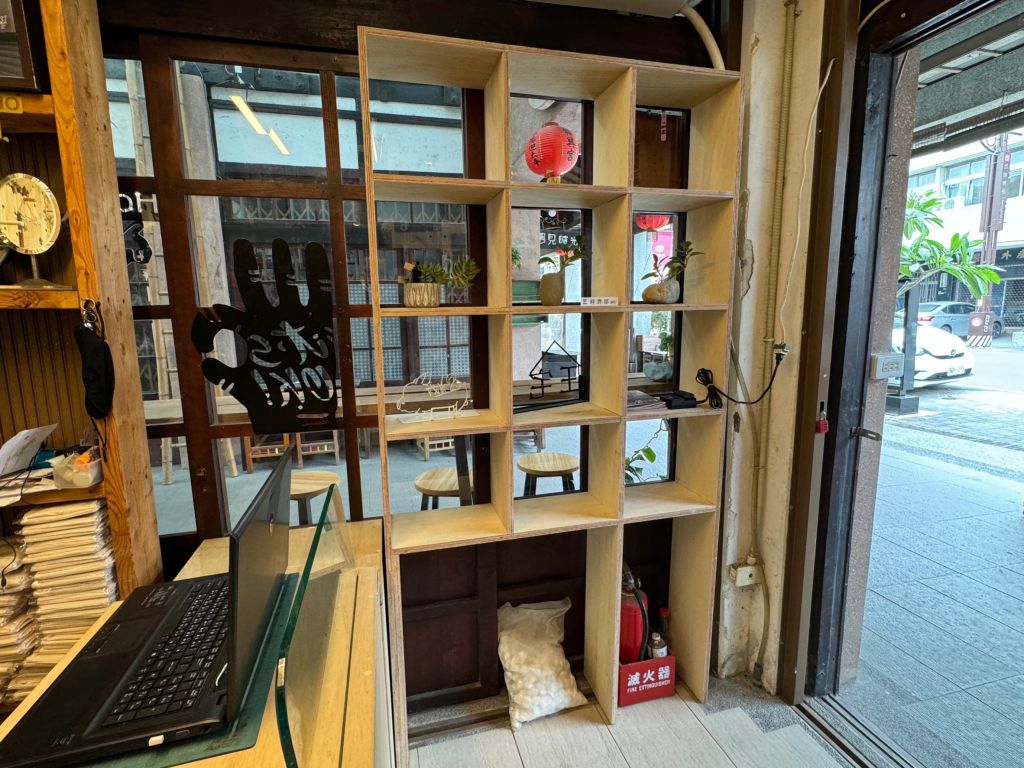 2.配合現有拉門的格狀窗框,讓陳列的層架在外也能有櫥窗展示的效果。
