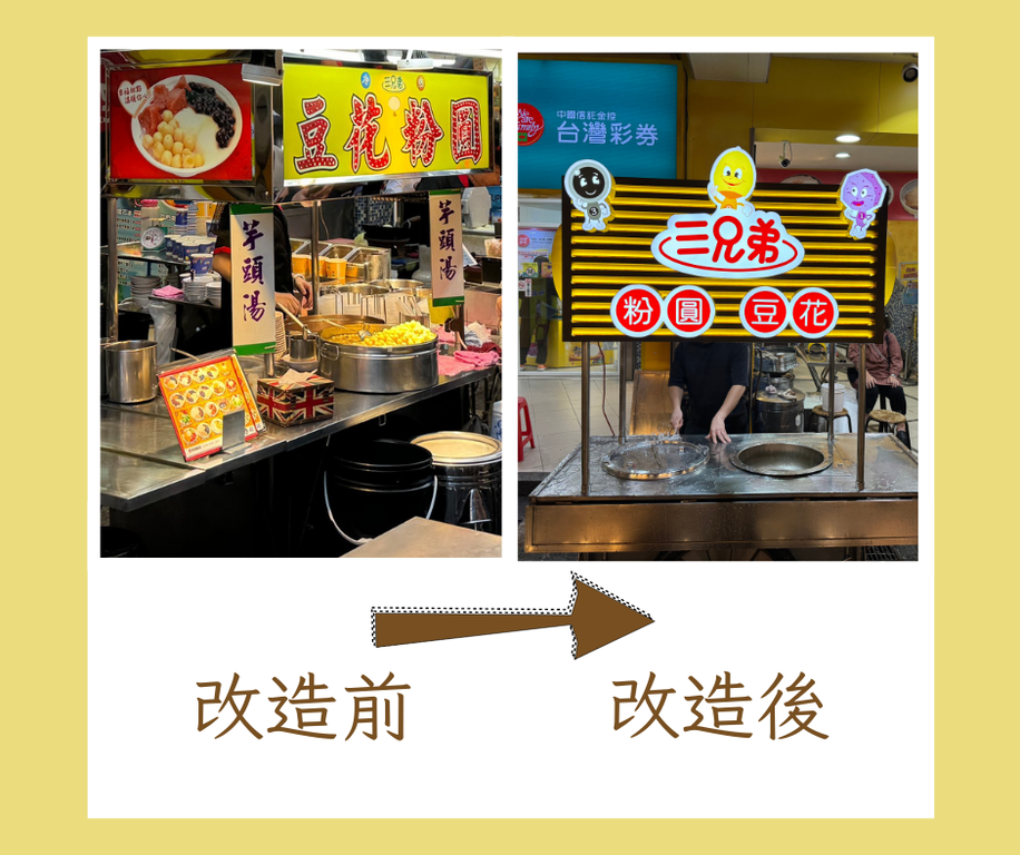 全新制服讓攤商形象更加專業,三兄弟豆花更推出了可愛的品牌吉祥物,增添互動趣味,逛夜市更有看頭!