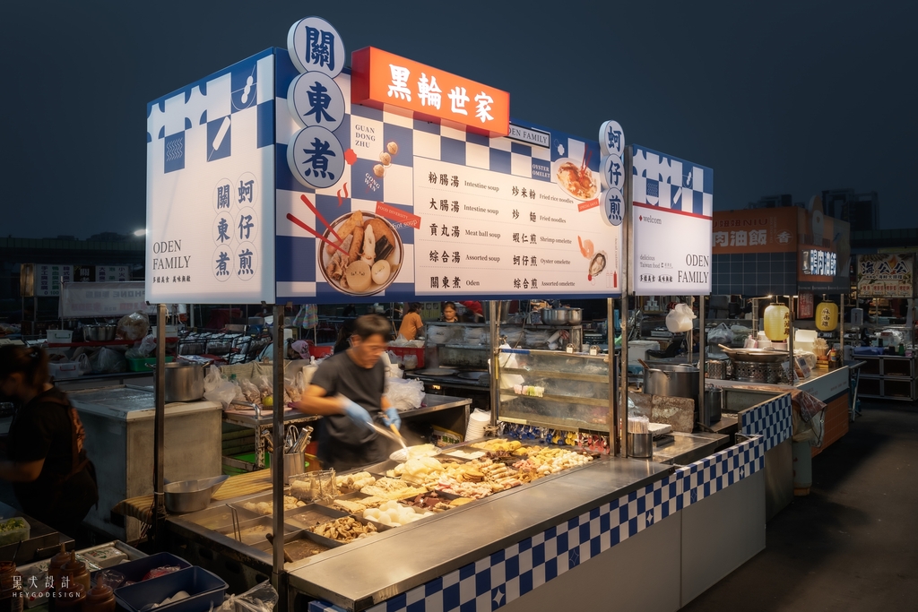 - 加大招牌主品項字體,並配合發光燈箱,打造醒目的攤位外觀。