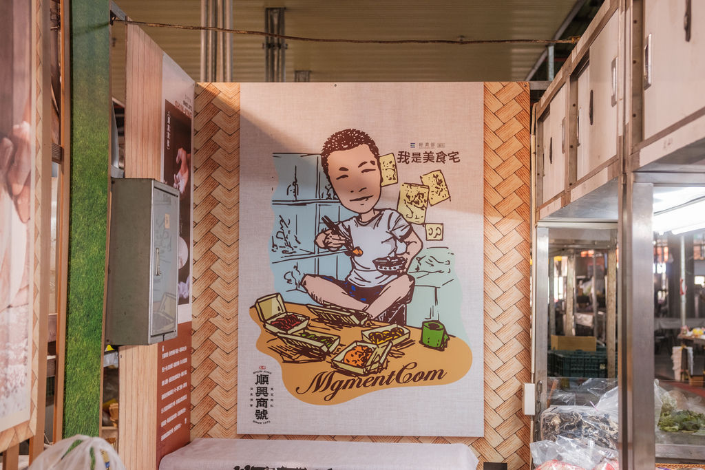 4.形象視覺:設計整體攤位形象識別,並將視覺延伸至攤位後方牆面,以木格柵加上產品大圖輸出貼圖,推廣宣傳出攤位主打商品,讓順興商號整體形象更為醒目亮眼。