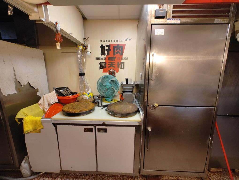 攤位後方白鐵工作桌(含收納):磚砌而成的桌牆無遮掩,收納凌亂,改放白鐵工作檯面增加收納空間。