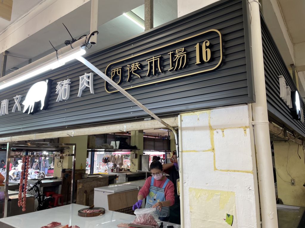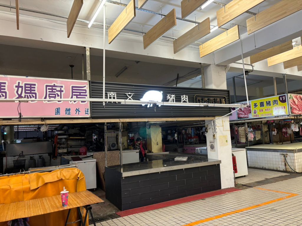 ◆ 攤位招牌依營業項目形象識別重新設計,以黑色為主色系搭配發光燈箱,並將視覺延伸至下方攤裙,以黑色牆磚紋理加裝 LED 燈條,進行營銷推廣,讓豬肉攤位整體形象沈穩內斂,吸引消費者目光。